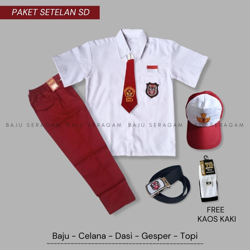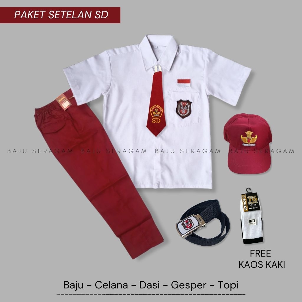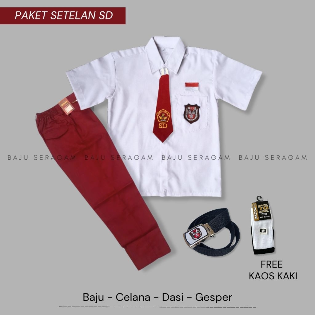 Baju Seragam Setelan Lengkap Sekolah SD Merah Putih Pria Lengan Pendek Celana Panjang Bahan Oxford Kelas 1-6 SD