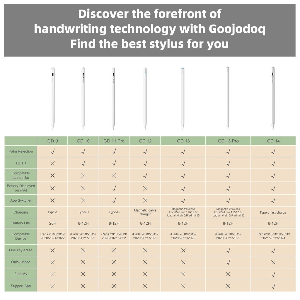 GOOJODOQ GD14 2024 New Stylus Pen With Ipad Find My App And Custom Shortcut Keys For mini5 6 Air4 5 6 Pro11 13 12.9 2018-2024