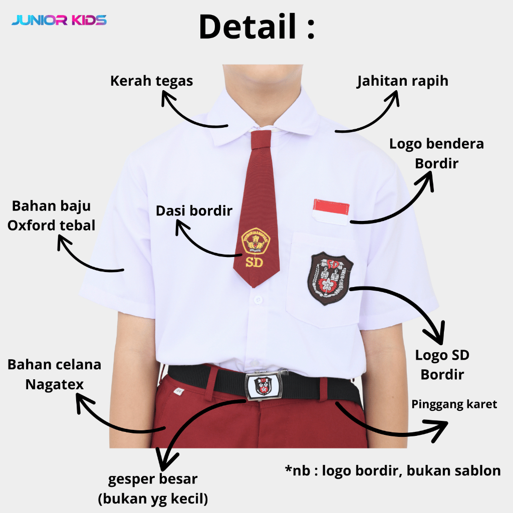 Setelan seragam sekolah SD merah putih & pramuka anak laki laki kelas 1-6 SD (MP A1 & PR A1)