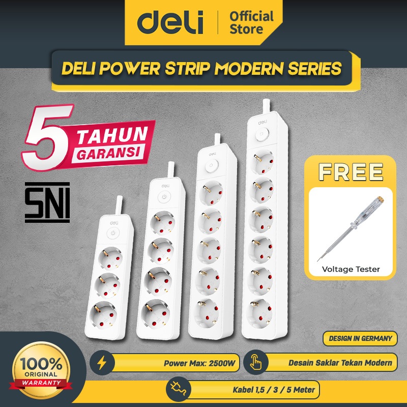 Deli Stop Kontak 3/4/5/6 Lubang Kabel 1,5/3/5 Meter Saklar Switch Tahan Panas Bergaransi ET75X