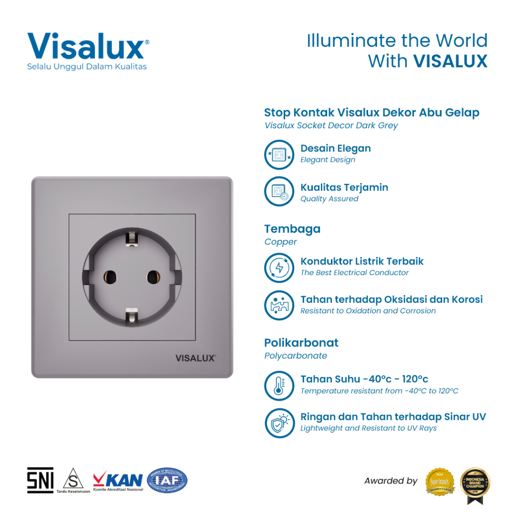 Visalux Stop Kontak Decor Series (16A) - 1G Dark Grey / Stop Kontak Premium (VSD1016-DG)