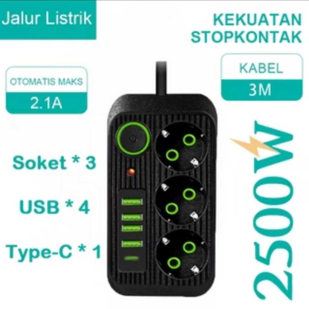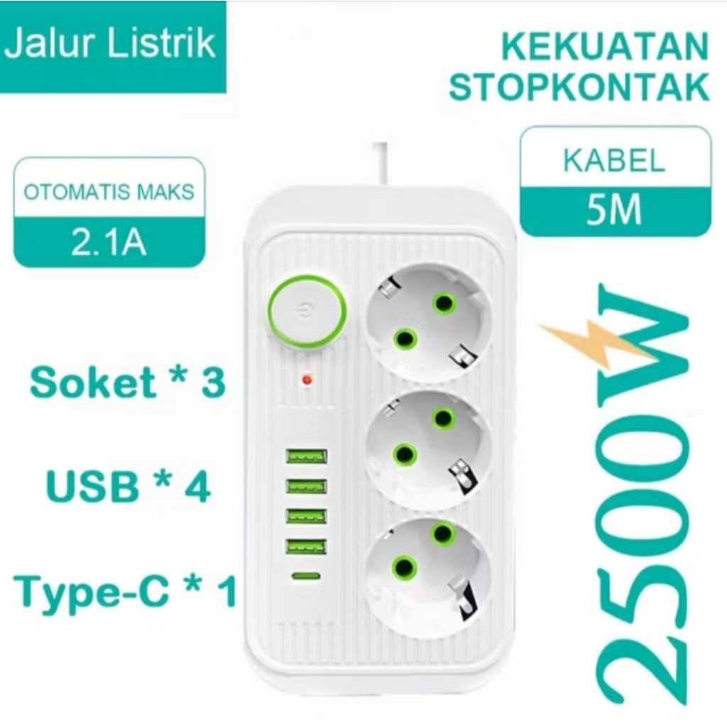 Stop Kontak Power Socket USB Charger 2500W Kabel Terminal Listrik Serbaa Multifungsi Panjang Kabel 3 Meter dan 5 meter