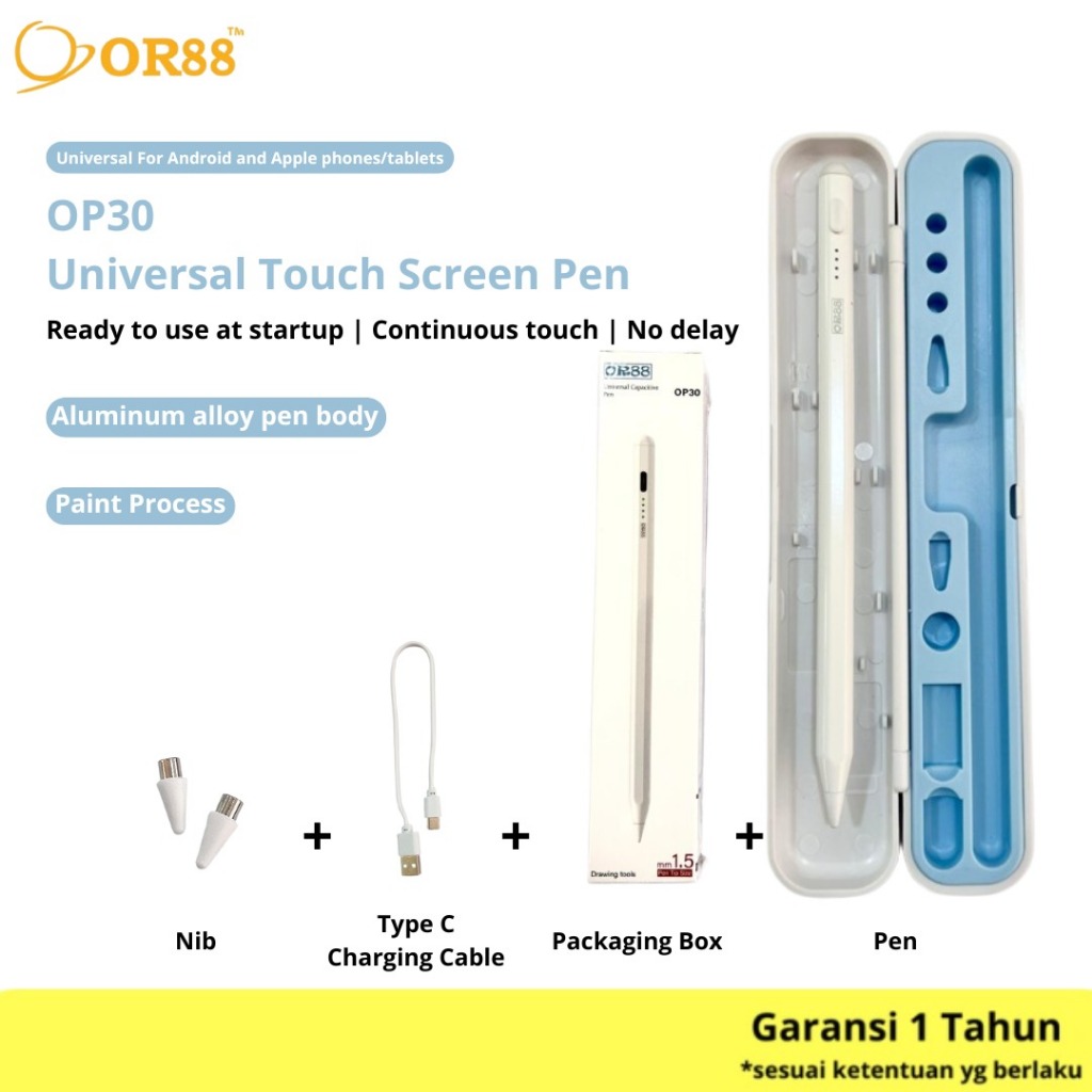 OR88 Universal capacitive pen OP30 / 1.5mm / WHITE Stylus Pen for Android ios windows / Works Without Bluetooth Ultra High Precision & Sensitivity, Palm Rejection, (White) with 2 Extra Nips