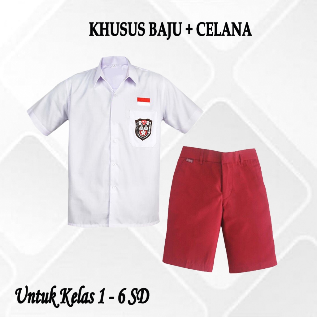 Setelan Seragam Sekolah Merah Putih Laki-Laki Baju Pendek dan Celana Pendek Paket Lengkap Kelas 1-6 SD