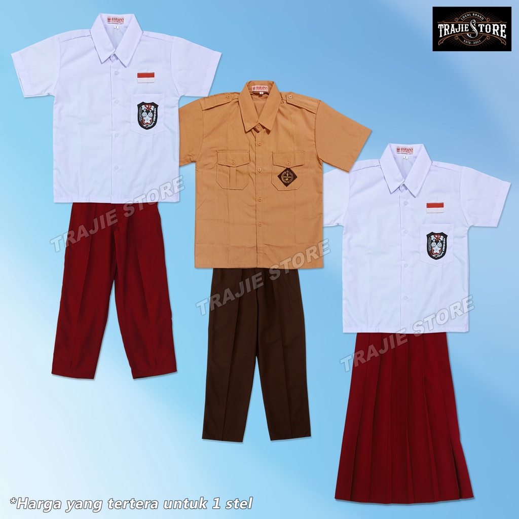 Seragam Sekolah SD Kelas 1-6 Cewek Cowok Pendek Panjang Merah Putih Coklat Pramuka Setelan Seragam Sekolah SD Pendek Pan