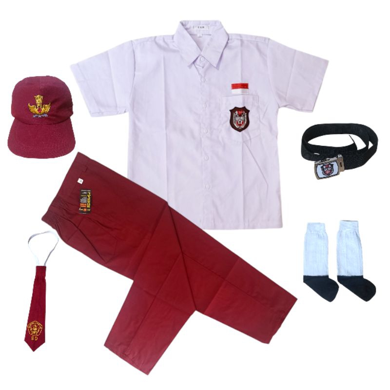 Set Lengkap Seragam Sekolah SD Anak Laki-Laki Merah Putih Baju Lengan Pendek Celana Panjang Kelas 1-6