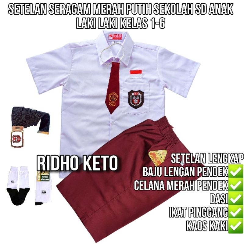 setelan seragam sekolah merah putih sekolah SD anak laki laki BAJU PUTIH LENGAN PENDEK CELANA PENDEK kelas 1-6 paket len