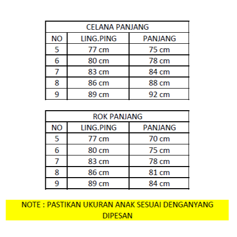 KEMEJA PANJANG, ROK PANJANG merah, CELANA PANJANG merah, ROK PANJANG putih, CELANA PANJANG putih, ROK PANJANG coklat, ROK PANJANG hijau, CELANA PANJANG hijau, CELANA PANJANG cokla