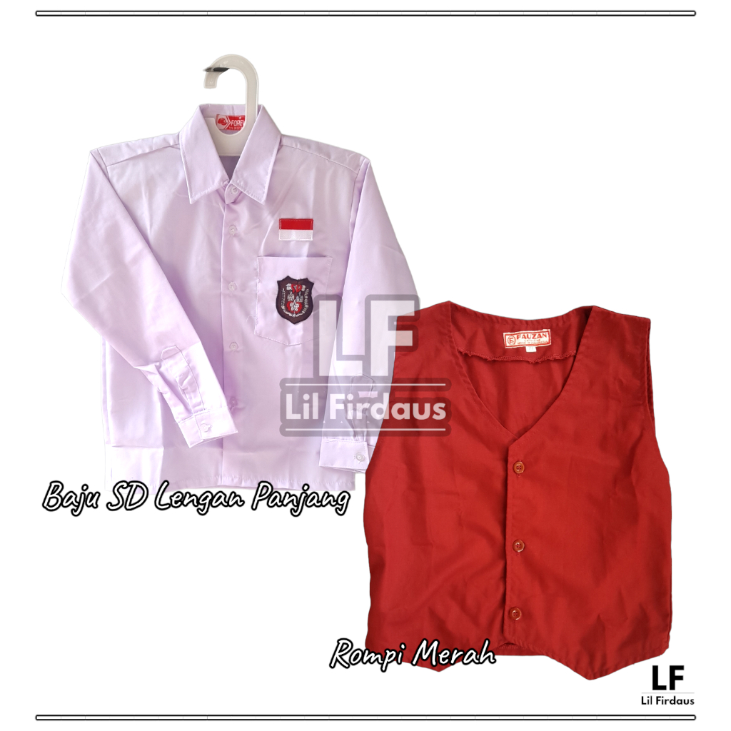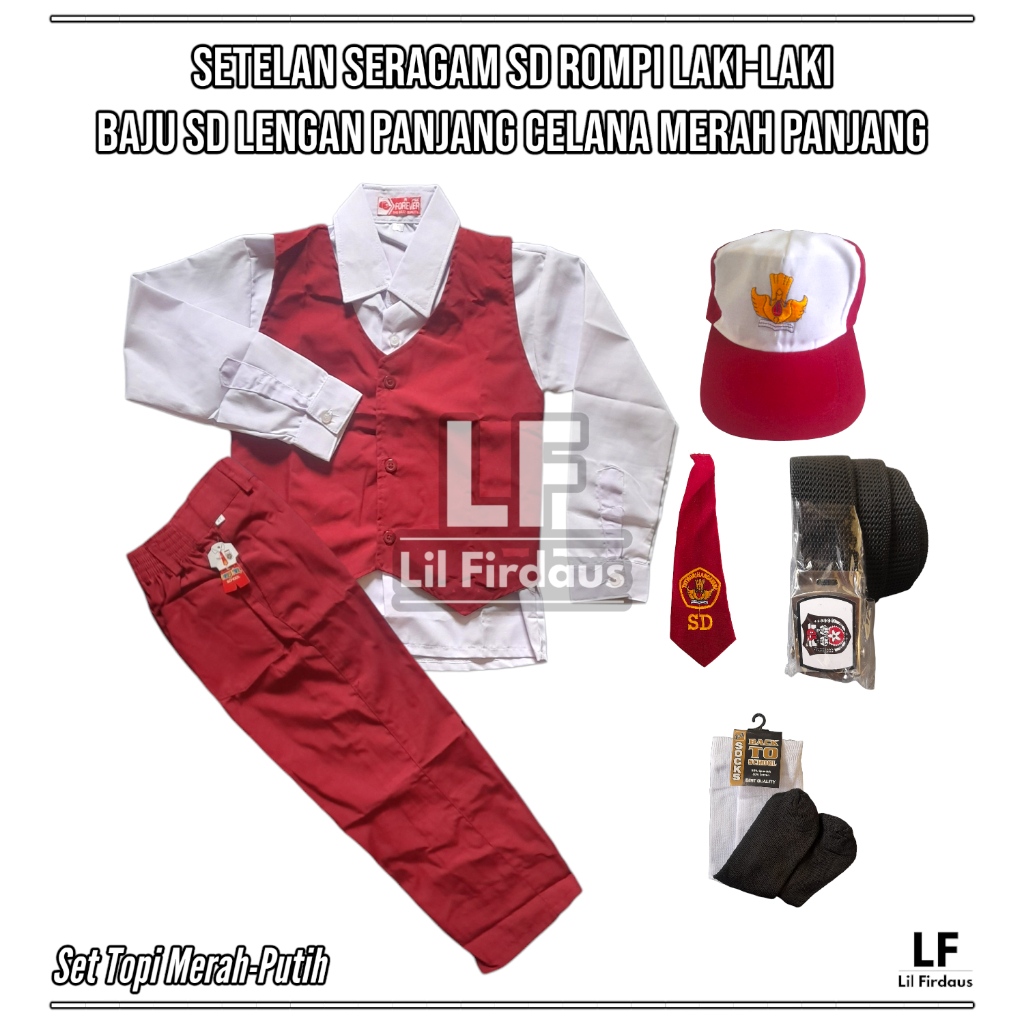 Setelan Seragam SD Merah-Putih Laki-Laki Baju SD Lengan Panjang Rompi Merah dan Celana Panjang