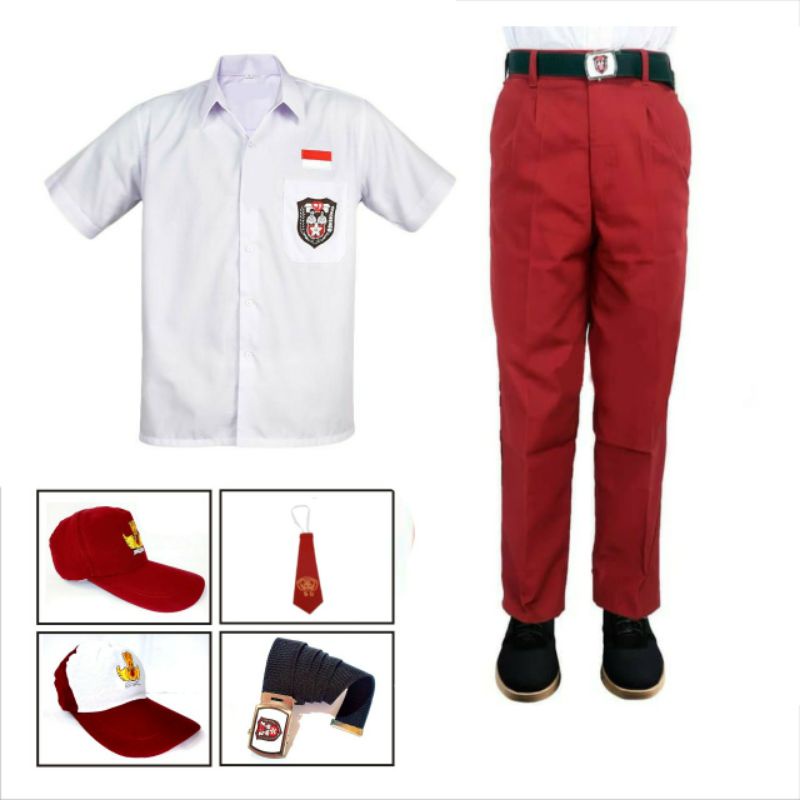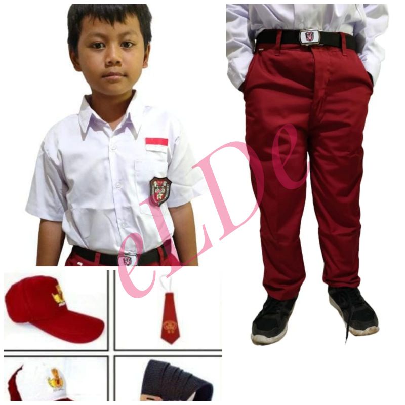 eLDe Setelan Seragam Sekolah SD MI Merah Putih Tangan Pendek Laki Laki