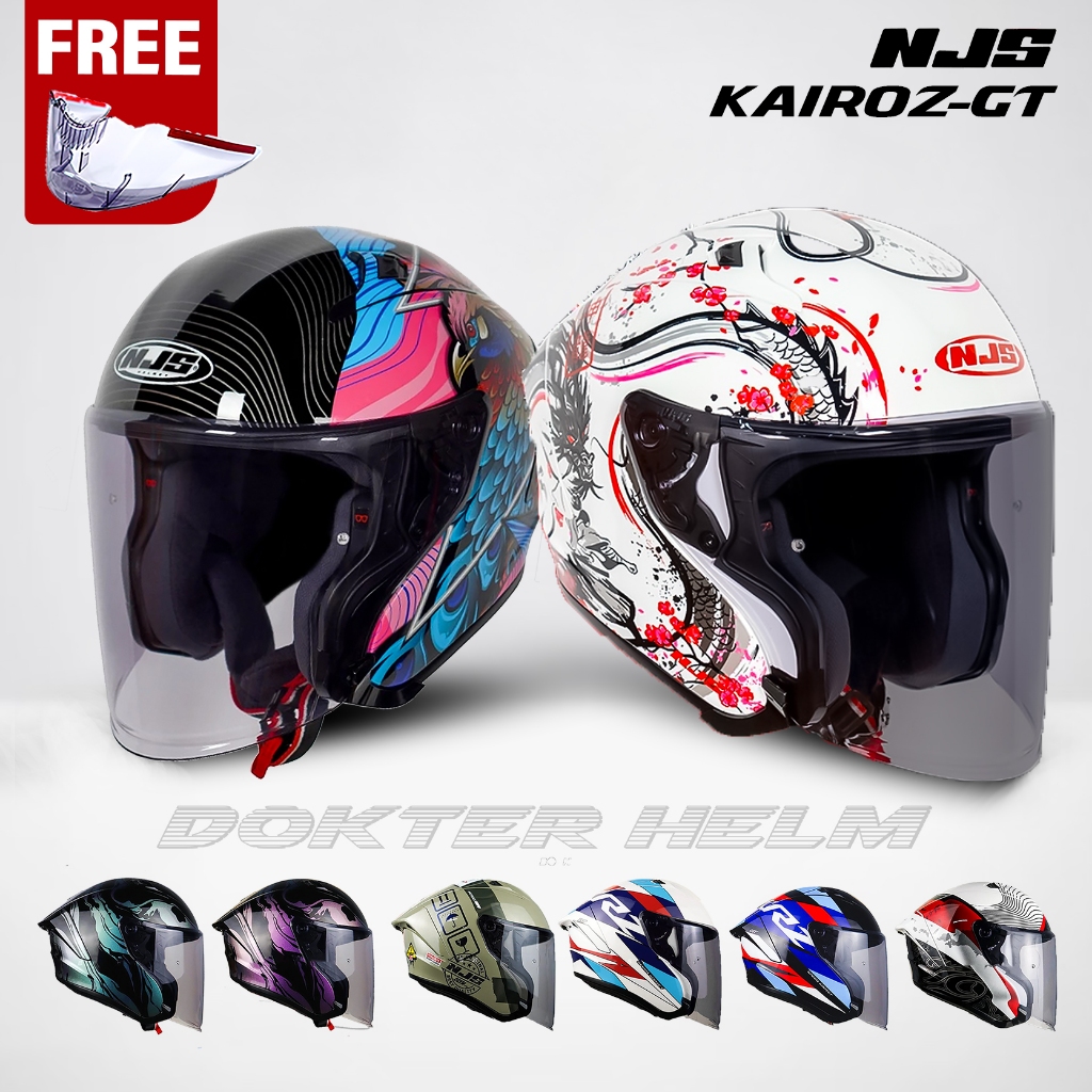 Helm NJS KAIROZ GT MOTIF Free Spoiler 3D Clear - Helm Half Face NJS GT ORIGINAL SNI