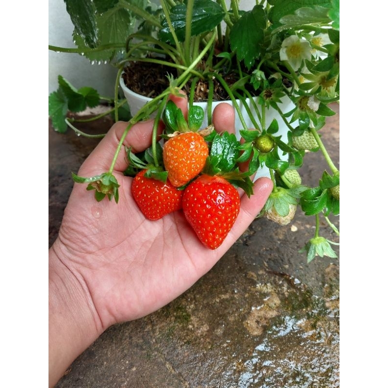 TANAMAN STRAWBERRY SUPER GRADE A ( SUDAH BERBUAH LEBAT BUKAN BERUPA BIBIT )