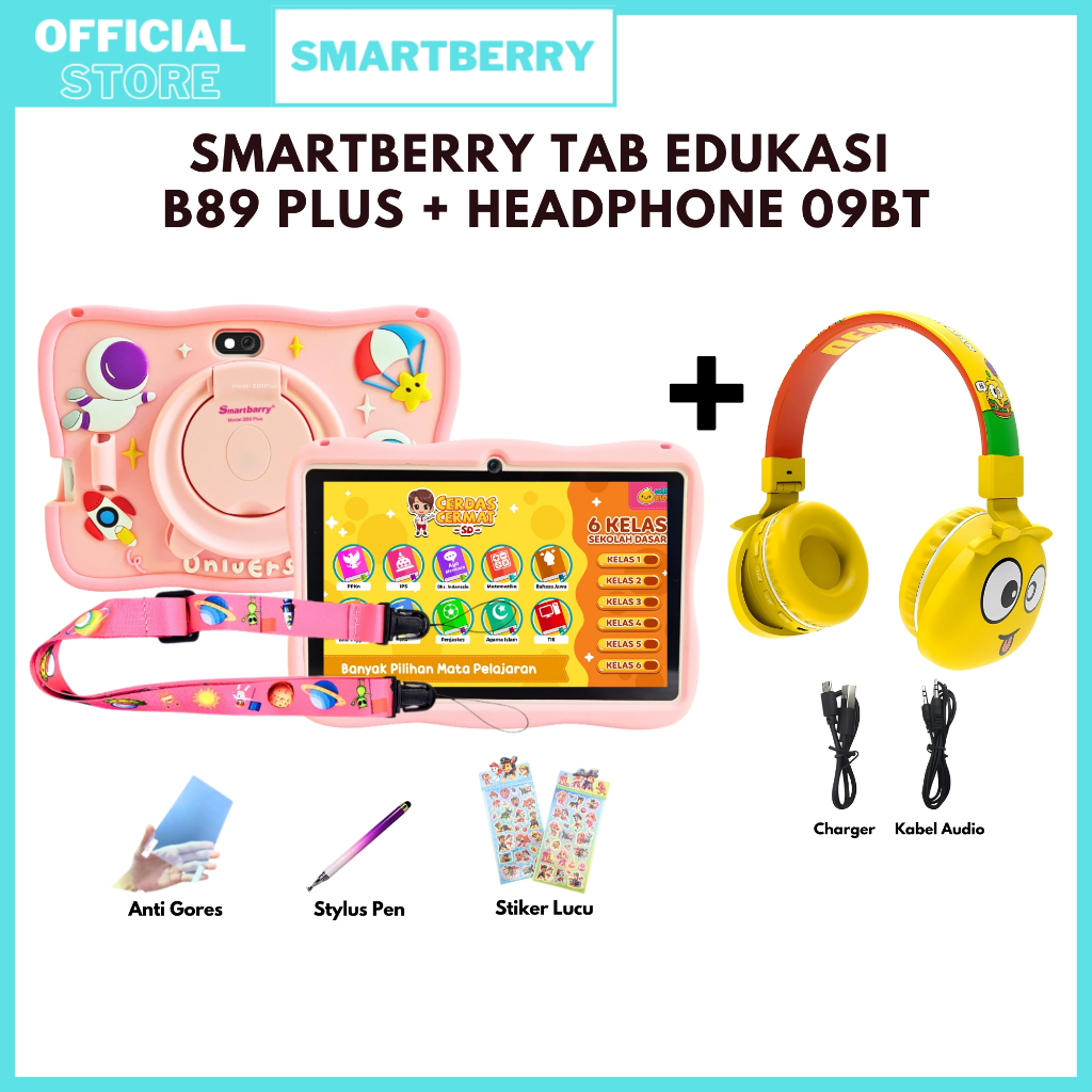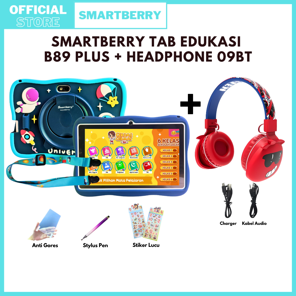 (TABLET + HEADPHONE) SMARTBERRY TABLET SMART TAB B89 PLUS + HEADSET 09BT KARAKTER ANAK - HADIAH / BELAJAR /