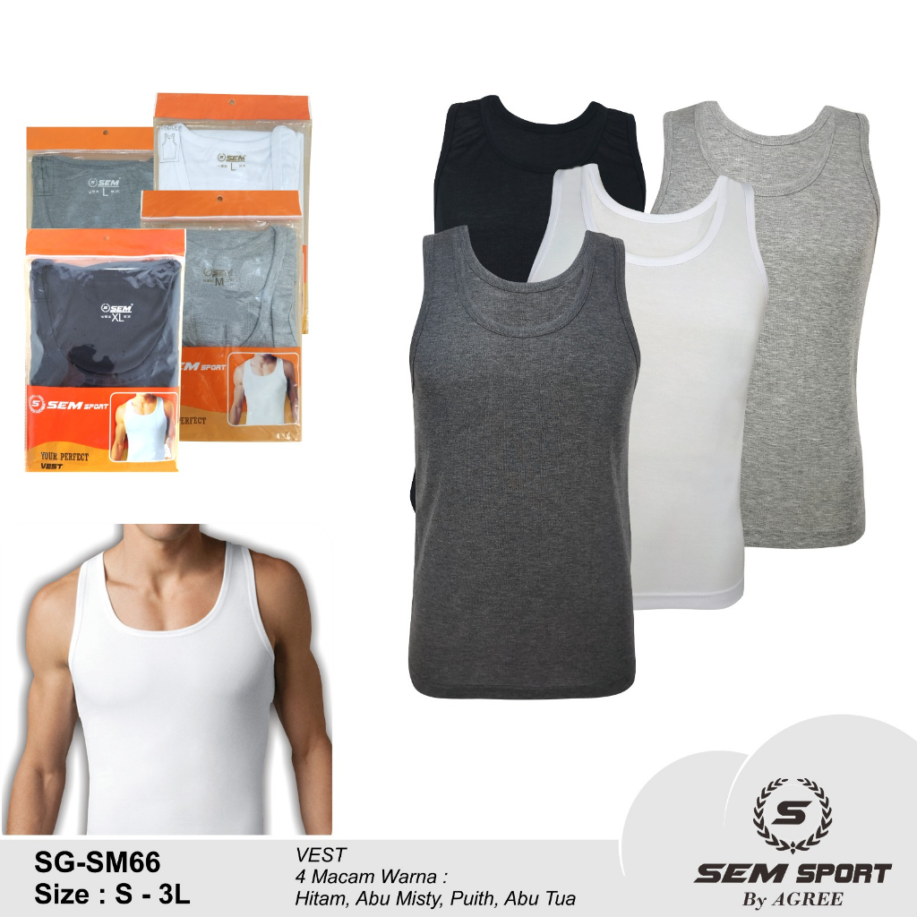 Singlet / Kaos Kutang Pria Dewasa SEM SPORT SM66 By Agree Bahan Katun ( Size M - XXL )