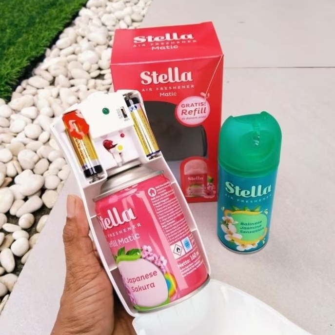 Stella Matic Set Lengkap Alat +Refill + Baterai Pengharum Ran Semprot Otomatis