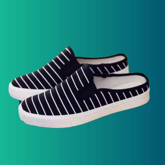 TERLARIS ALASCO SEPATU SLIP ON WANITA TRENDY BEST SELLER MOTIF SALUR FLAT SHOES KERJA HITAM KARET HITAM 36