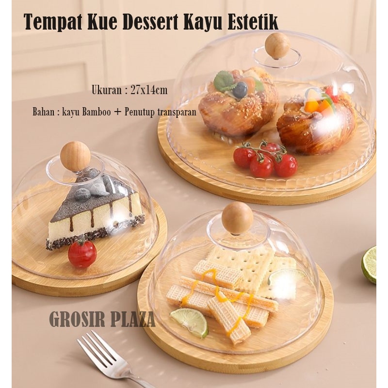 Tempat Kue Bambo Bertutup Tudang Saji Tempat Kue Plastik Transparan Tempat Bolu Wadah Piring Bolu Penutup Makanan Tempat Kue Bamboo Estetik
