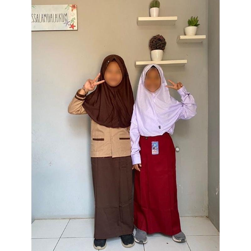 Setelan Seragam Sekolah SD MI cewek putih merah baju lengan panjang dan rok panjang merk ABBA