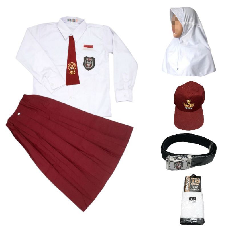 Setelan Seragam Sekolah SD Merah Putih Perempuan Lengan Panjang Rok Panjang Super Lengkap Kelas 1-6