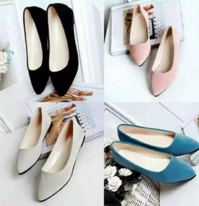 TERLARIS SEPATU BALET POLOS TRENDY ( BAHAN BELUDRU ASLI ) HITAM 36