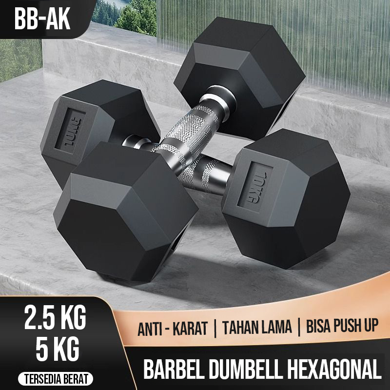 BBAK Dumbell Barbel Hexagonal Berat 2.5/5 KG Waterproof | Dumbell Angkat Beban Olahraga Anti-Karat