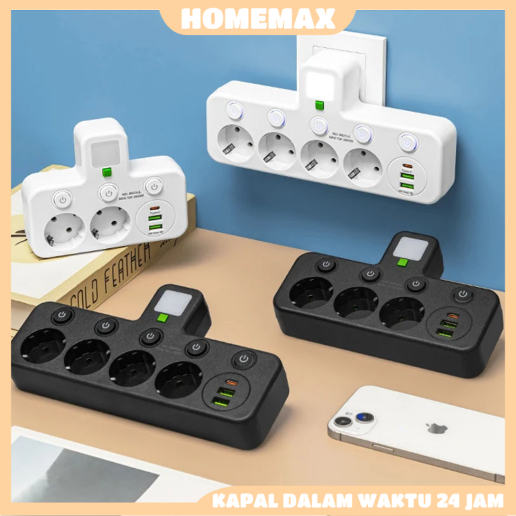 Stop Kontak Multi EU Plug 5 Lubang USB Type C Fast Charging Colokan Listrik Anti Panas Short Circuit untuk Rumah Kantor
