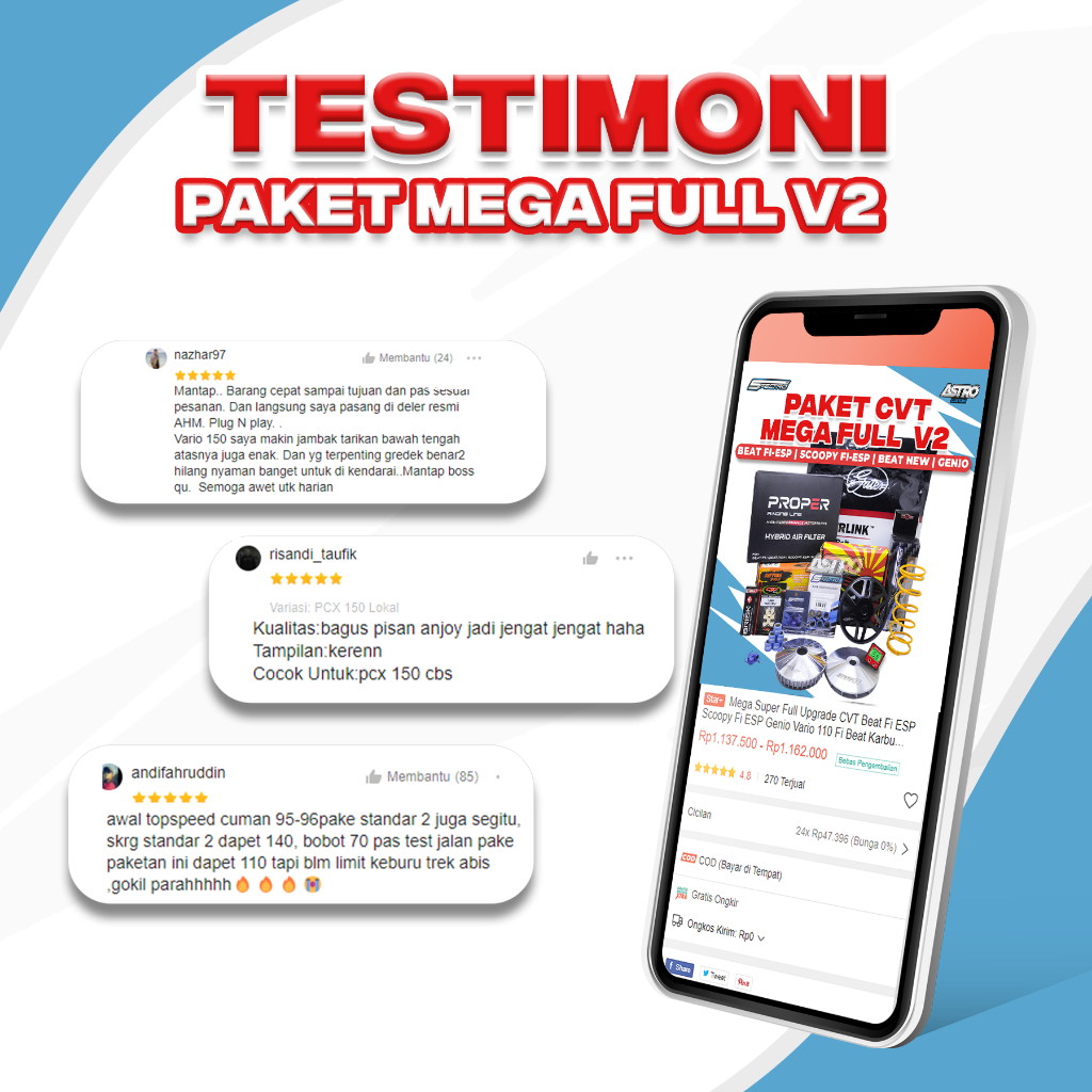 Mega Super Full Upgrade CVT V2 Beat Fi Scoopy Fi ESP Genio Vario 110 Deluxe Street Mangkok Kawahara