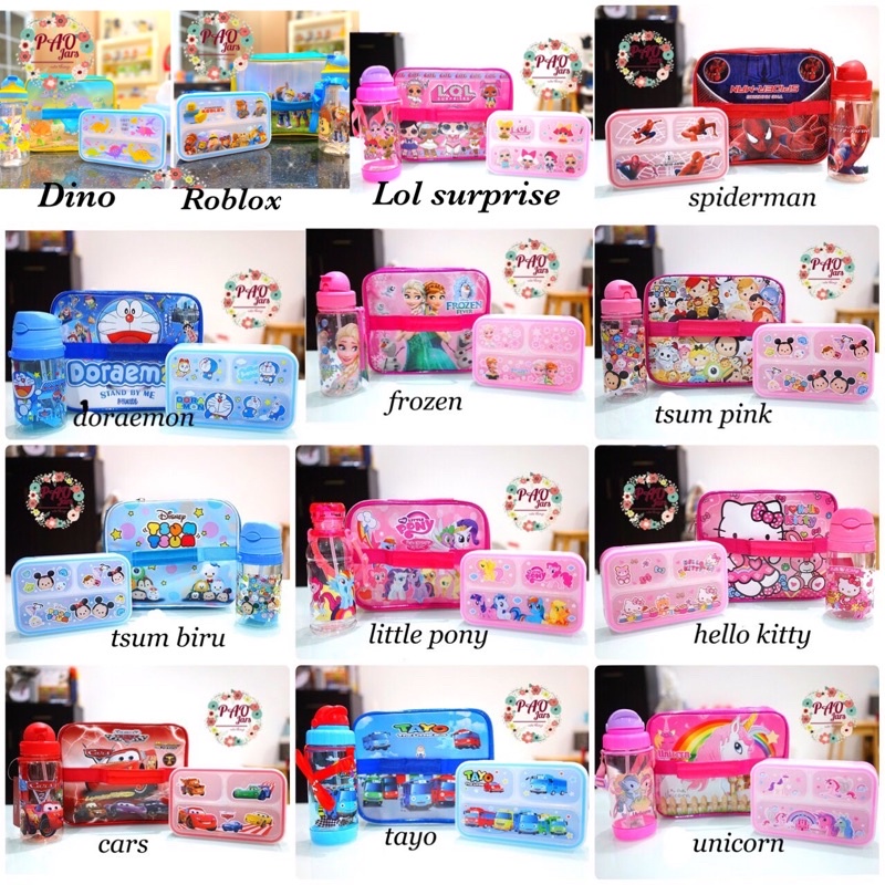 set bekal spiderman / tempat makan doraemon TERMURAH / lunch box anak / tempat makan LOL