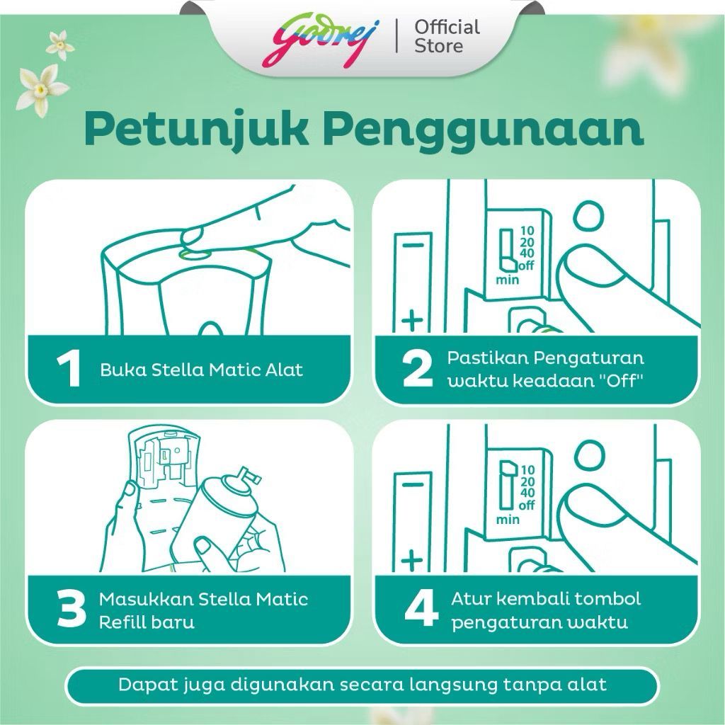Stella Matic Box Set [ isi 1 Alat + Refill ] Green Fantasy - Pengharum Pewangi Ran Otomatis Balinese Jasmine Japanes