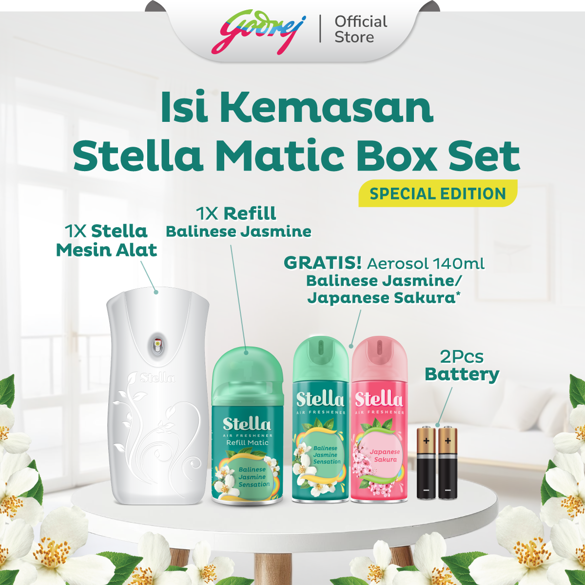 Stella Matic Box Set Balinese Jasmine (Alat + Refill) - Pengharum Pewangi Ran Otomatis
