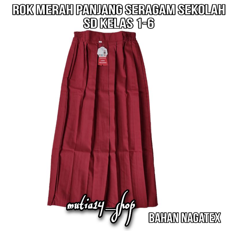 setelan seragam sekolah SD merah putih perempuan lengan pendek rok merah panjang pakaian seragam sekolah SD