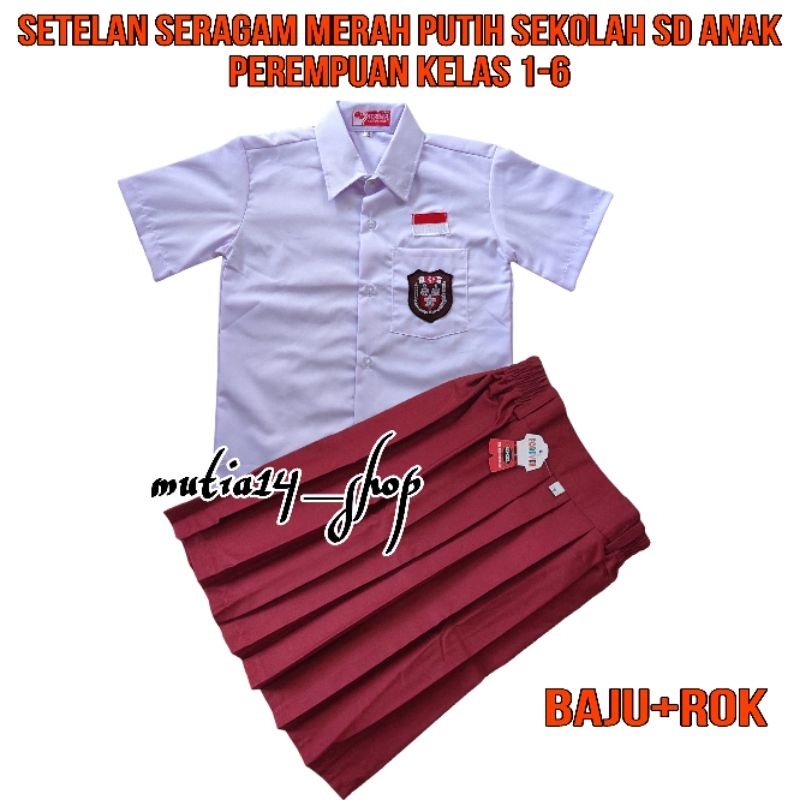 setelan seragam sekolah merah putih SD anak perempuan BAJU LENGAN PENDEK ROK PENDEK kelas 1-6