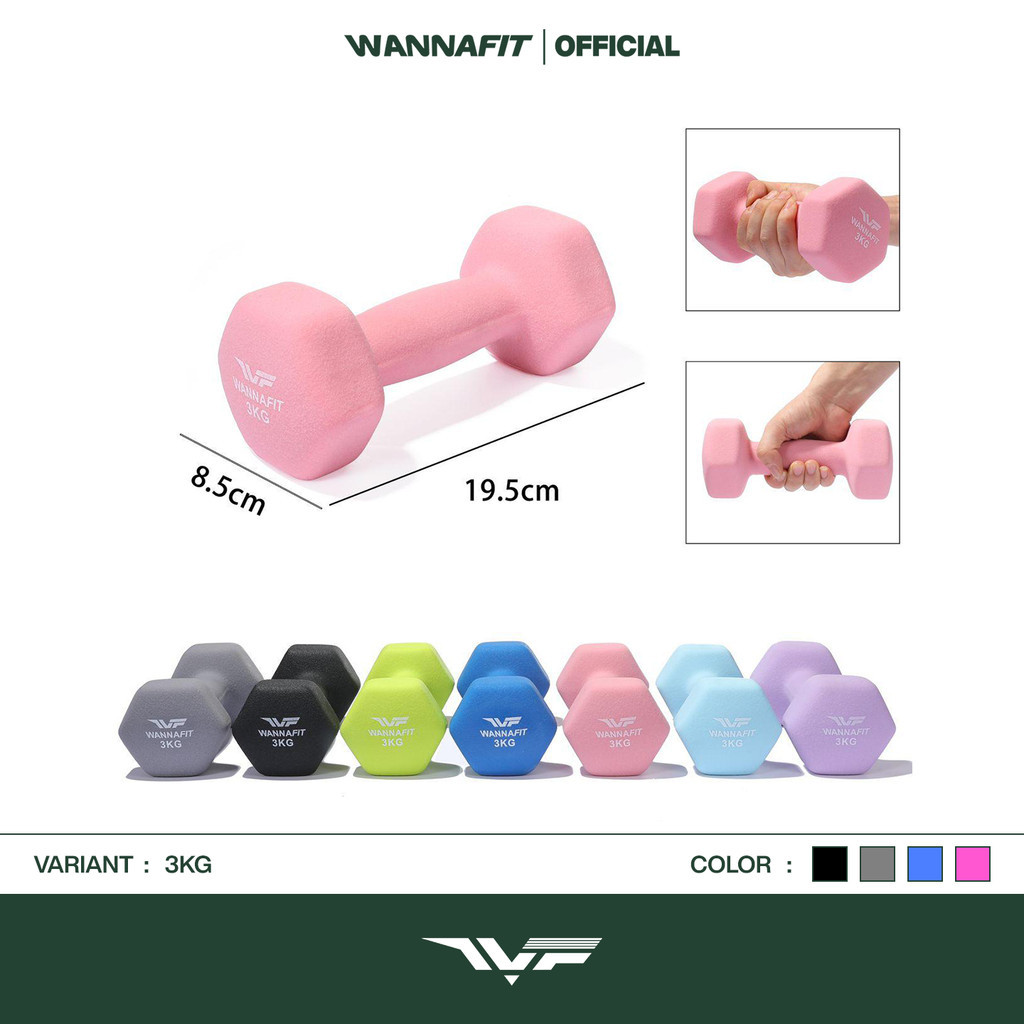 WANNAFIT 2pcs Dumbbell Barbel 1kg 2kg 3kg 4kg 5kg | Dumbell Barbell Vinyl Neoprene | Alat Latihan Beban