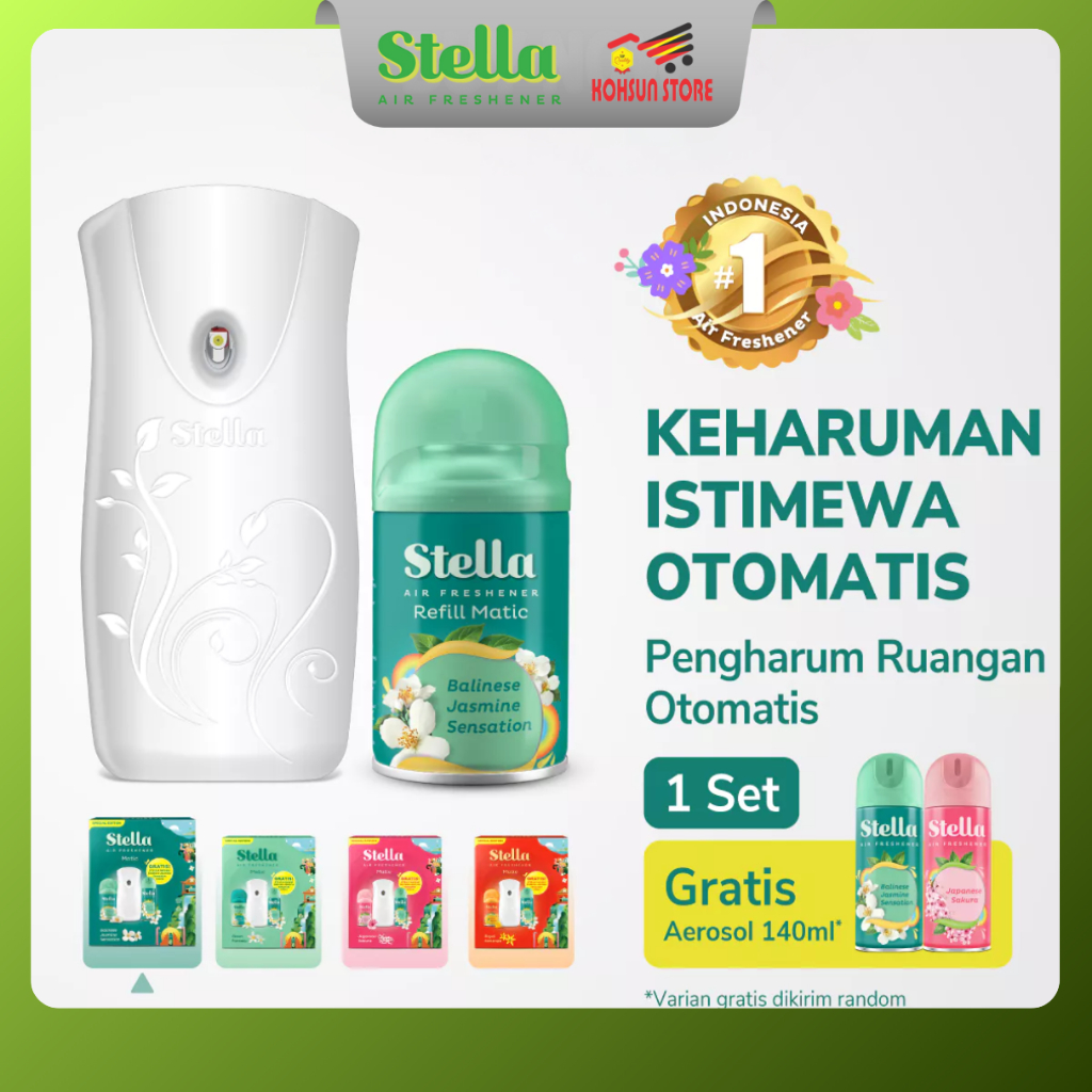 Stella Matic Box Set ALL VARIAN - Pengharum Pewangi Ran Otomatis - FREE Aerosol 140 ml