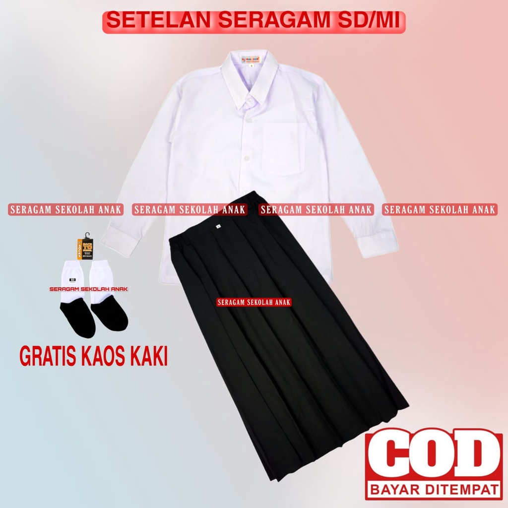 Setelan Seragam Sekolah SD MI Putih Hitam Perempuan Baju Putih Polos Panjang Rok Hitam Panjang Kelas 1 – 6 SD