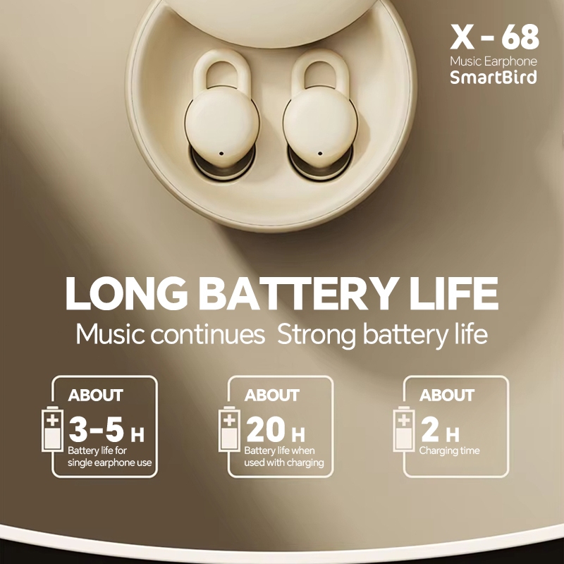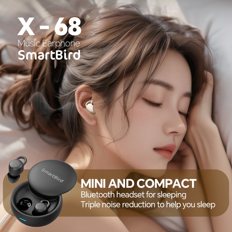 SmartBird Earphone X68 Bluetooth 5.4 Mini ultra light sleep HI-FI TWS Wireless Headset Earbuds Headphone with Mic