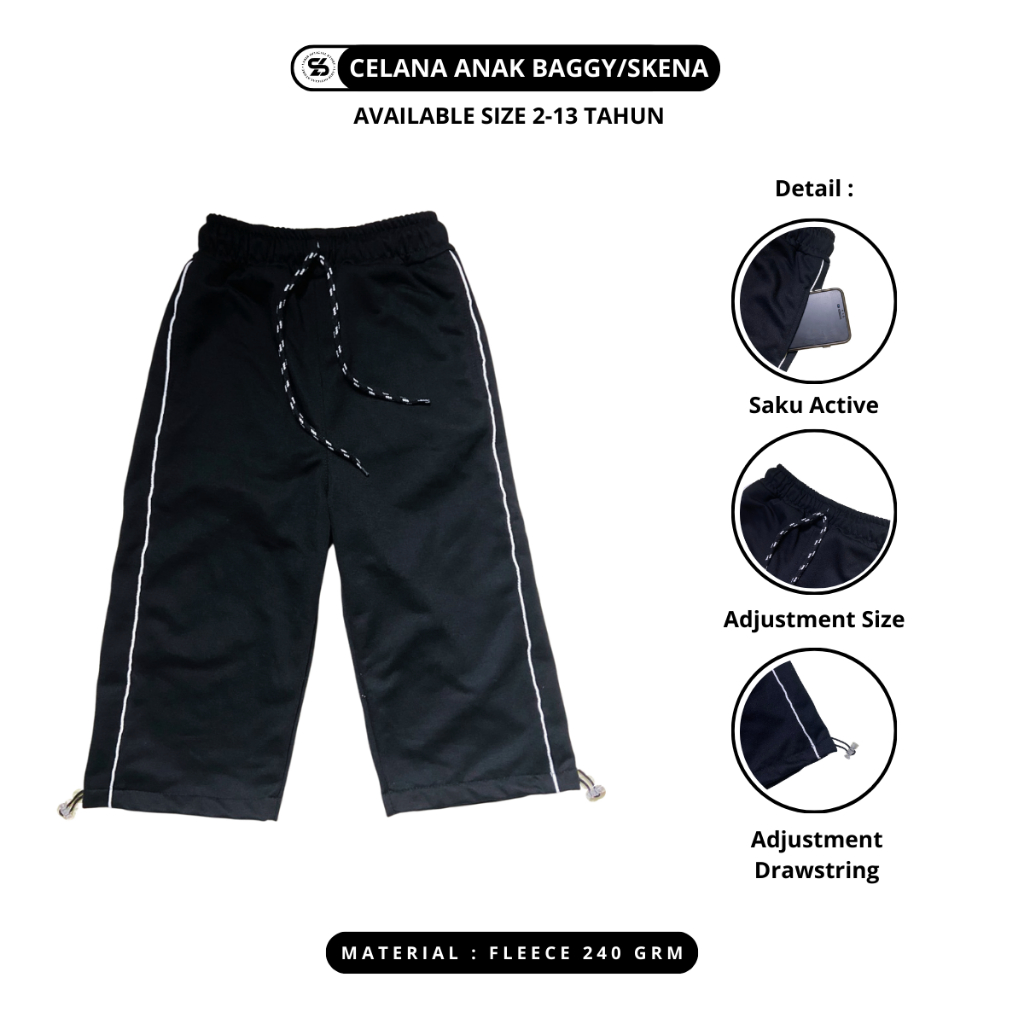 [Mall] Celana Anak Baggy/Skena Strip Putih Laki-Laki Dan Perempuan 2-13 Tahun Bahan Fleece 240 Grm - Fashion Anak