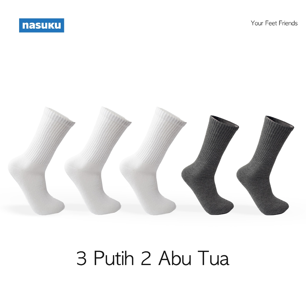 Nasuku - Paket 5 Pasang Kaos Kaki Oldshool - Paket Bundling Kaos Kaki Polos - 5 Pasang Kaos Kaki