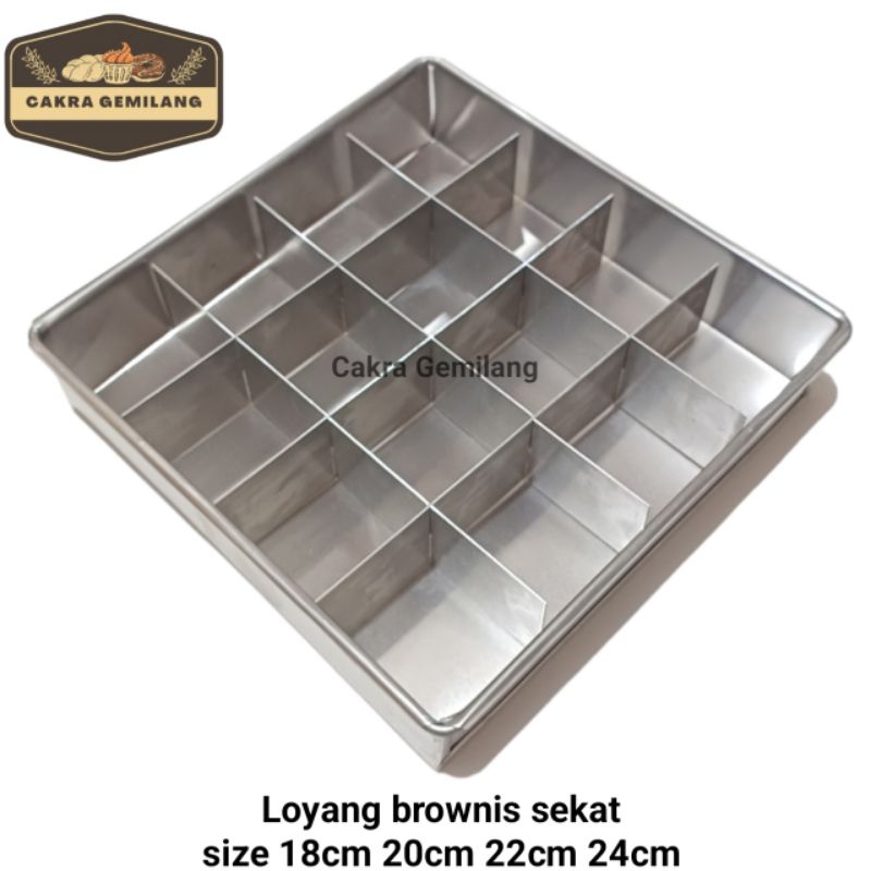 loyang sekat Brownis persegi kotak size 16 | 18 | 20 | 22 | 24 bahan almunium tebal