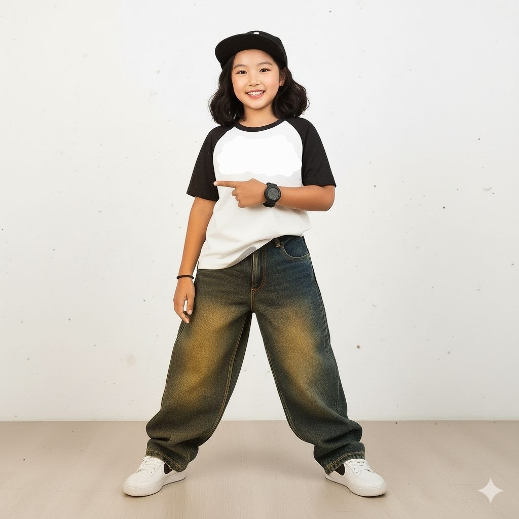 [Mall] Celana Jeans Anak Perempuan Kulot Skena Gombrong Usia 3 Tahun Sampai Remaja Warna Light Snow Sprey Hitam Snow Sprey Terb