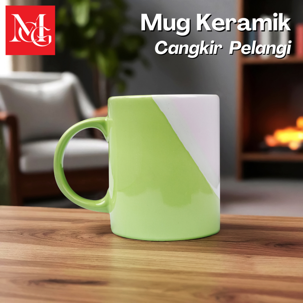 McG - Mug Keramik Cangkir Pelangi 11 Oz Diameter 8 cm Tinggi 10 cm Ideal untuk Rumah Makan Restoran dan Rumah Fleksibel