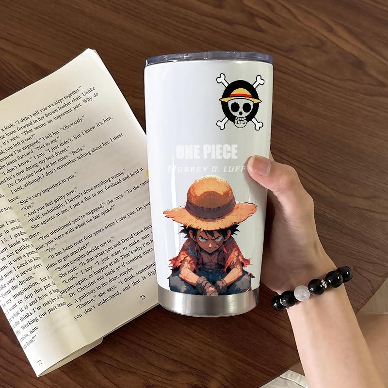 Tumbler One Piece Luffy Gelas Diletakkan Di Dalam Mobil Coffee Mug Stainless Steel Dengan Tali CUP 591 ML Anime
