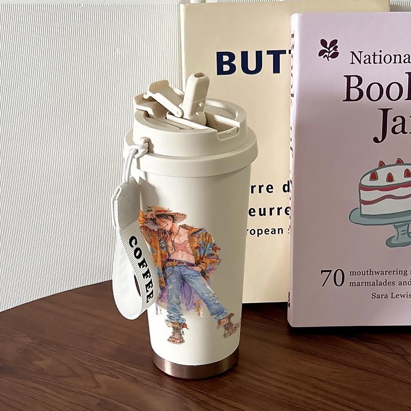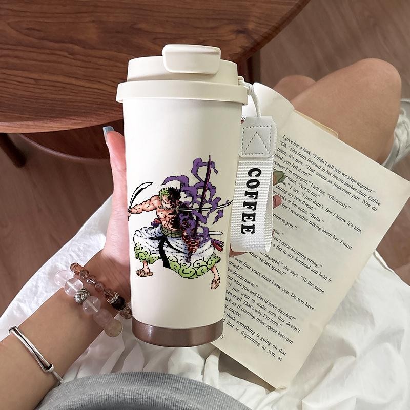 Tumbler One Piece Zoro Luffy CUP 500 ML Cartoon Termos Kopi Stainless Steel Dengan Sedotan Termos Kopi Yang Elegan