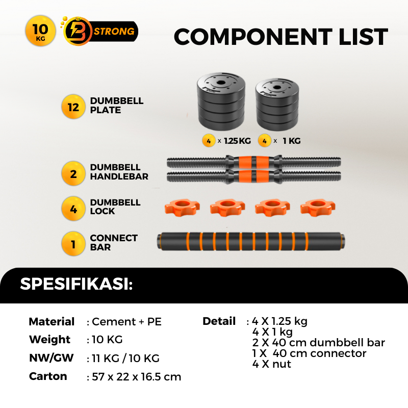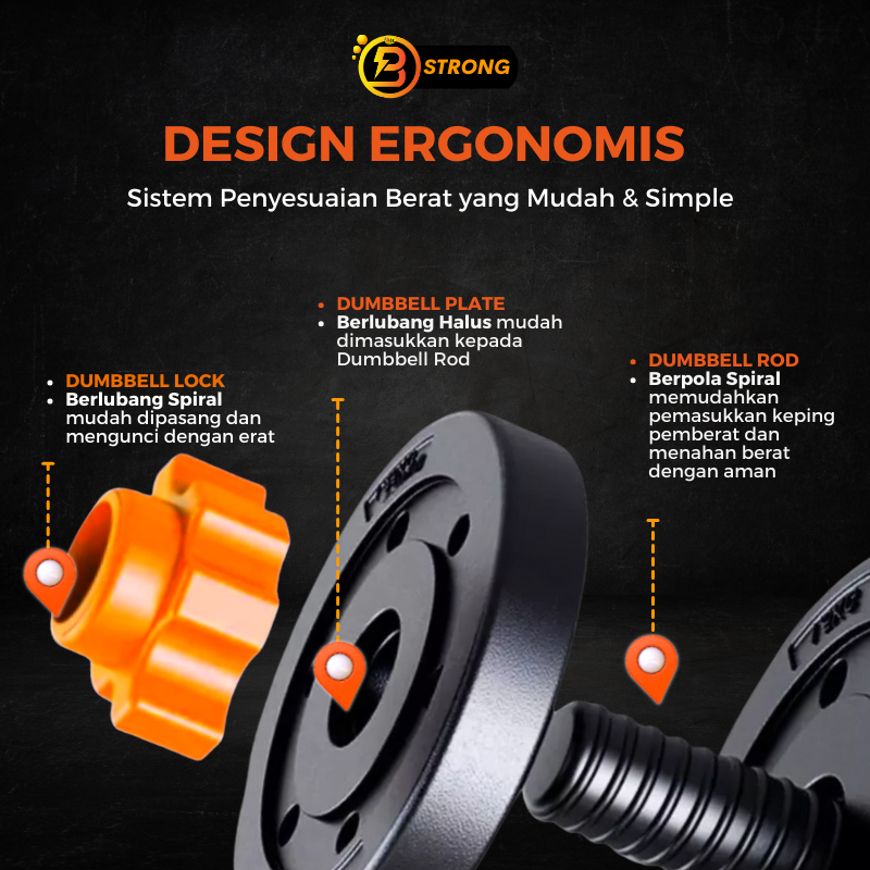 B-STRONG BS-10 Adjustable Dumbbell Set 10KG - 4-IN-1 Barbell Kettlebell Push-Up Alat Fitness Gym