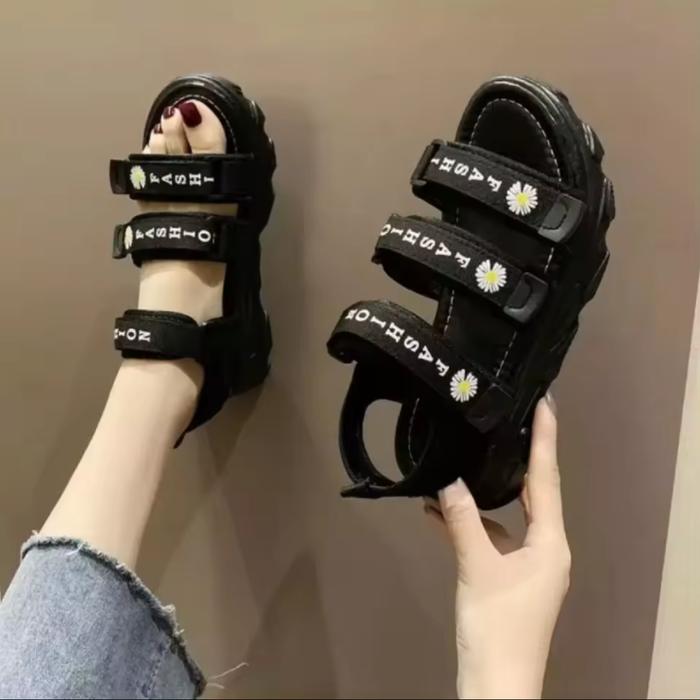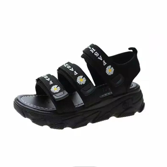 TERLARIS SANDAL LEBARAN PEREMPUAN MODEL GUNUNG FASHION BUNGA TERBARU READY SIZE ( 30 40 ) ALASCO PUSAT SEPATU BOGOR WANITA SENDAL FULL HITAM 30