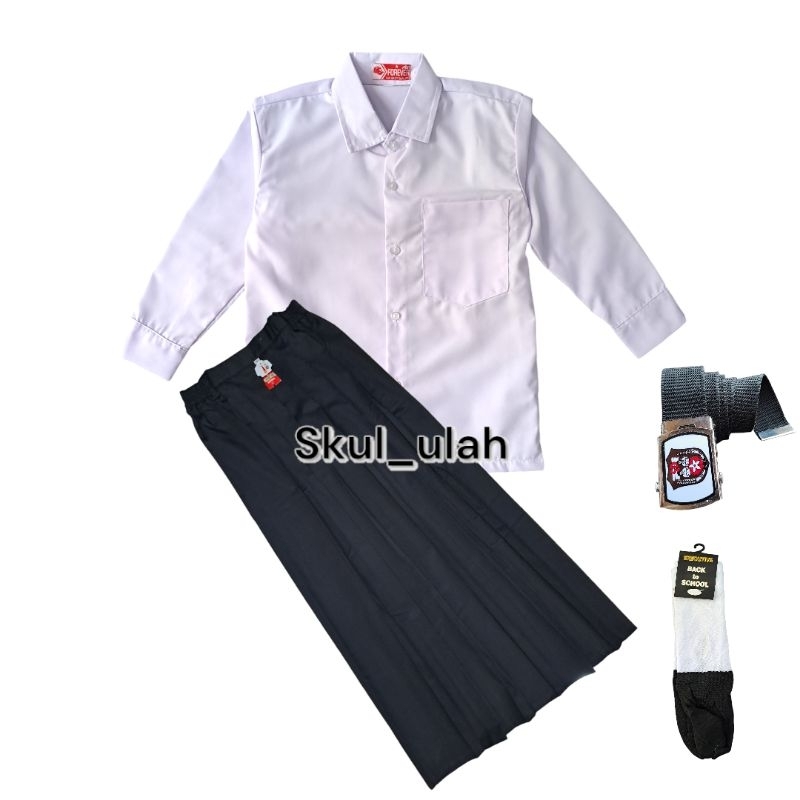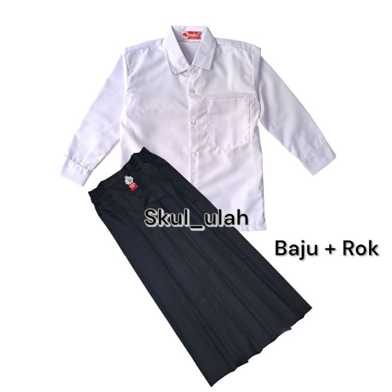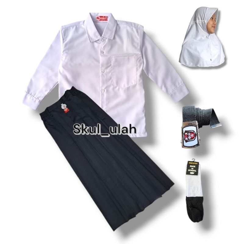 Setelan Putih Hitam Anak Perempuan Seragam Sd MI baju Polos Panjang Rok Rempel Hitam