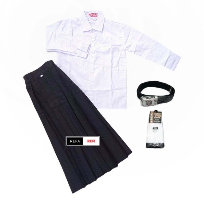 Setelan Seragam Sekolah MI Hitam Putih Anak Perempuan Baju Lengan Panjang Rok Panjang