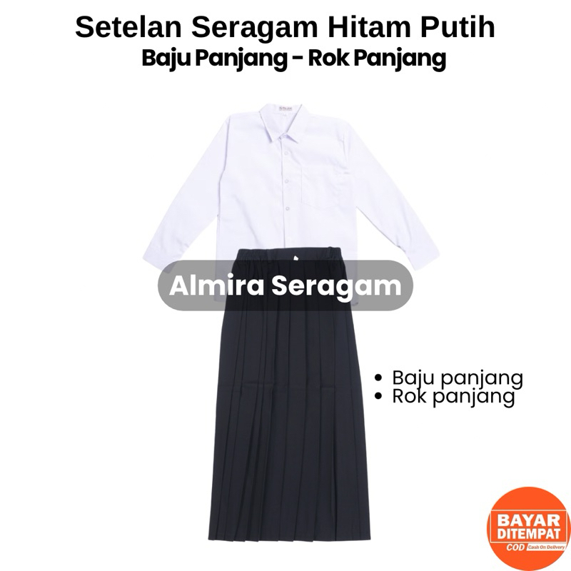 Setelan Seragam Sekolah SD SMP MI MTS PUTIH HITAM BAJU PANJANG POLOS ROK PANJANG HITAM PEREMPUAN