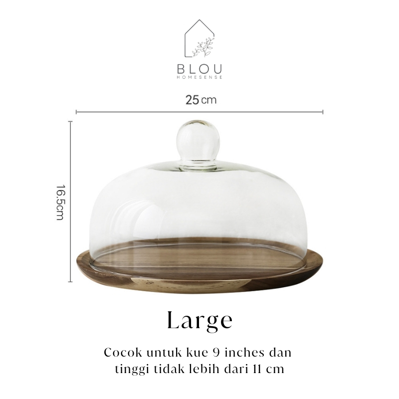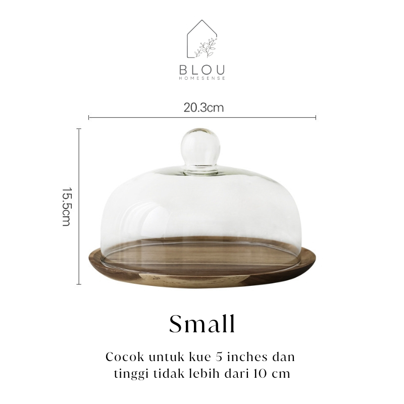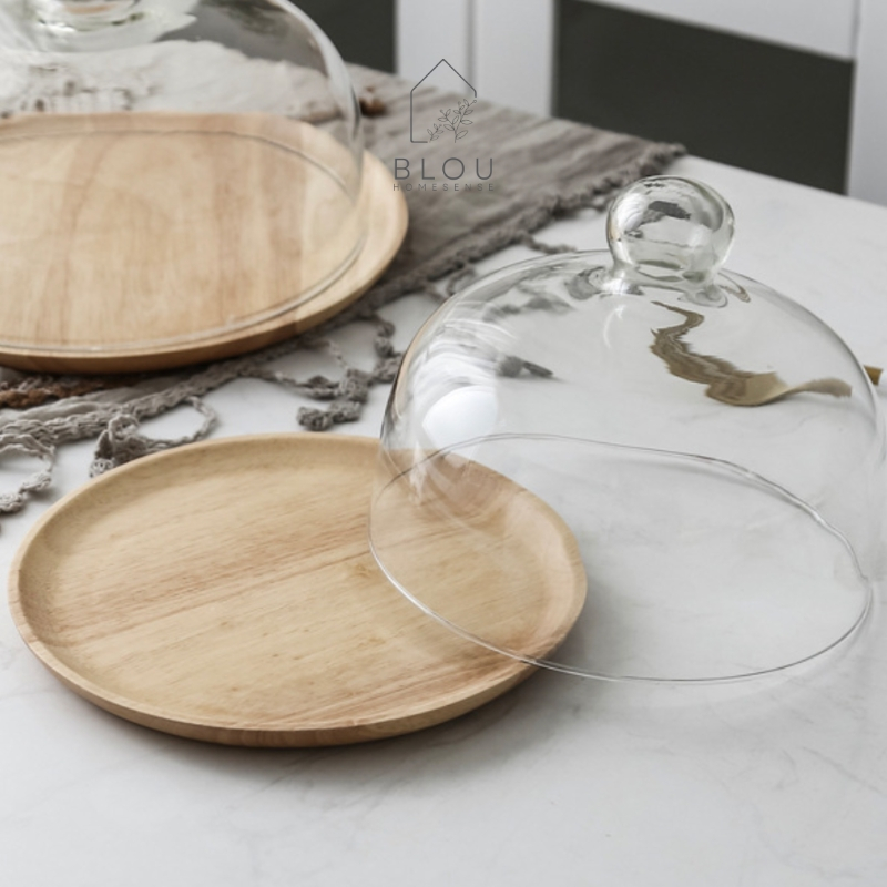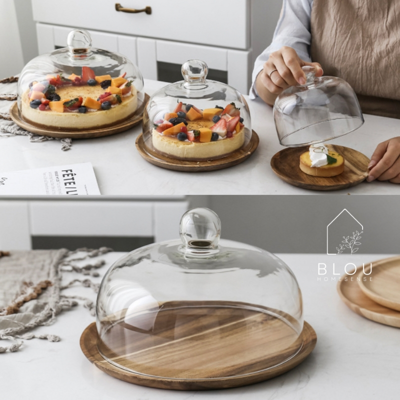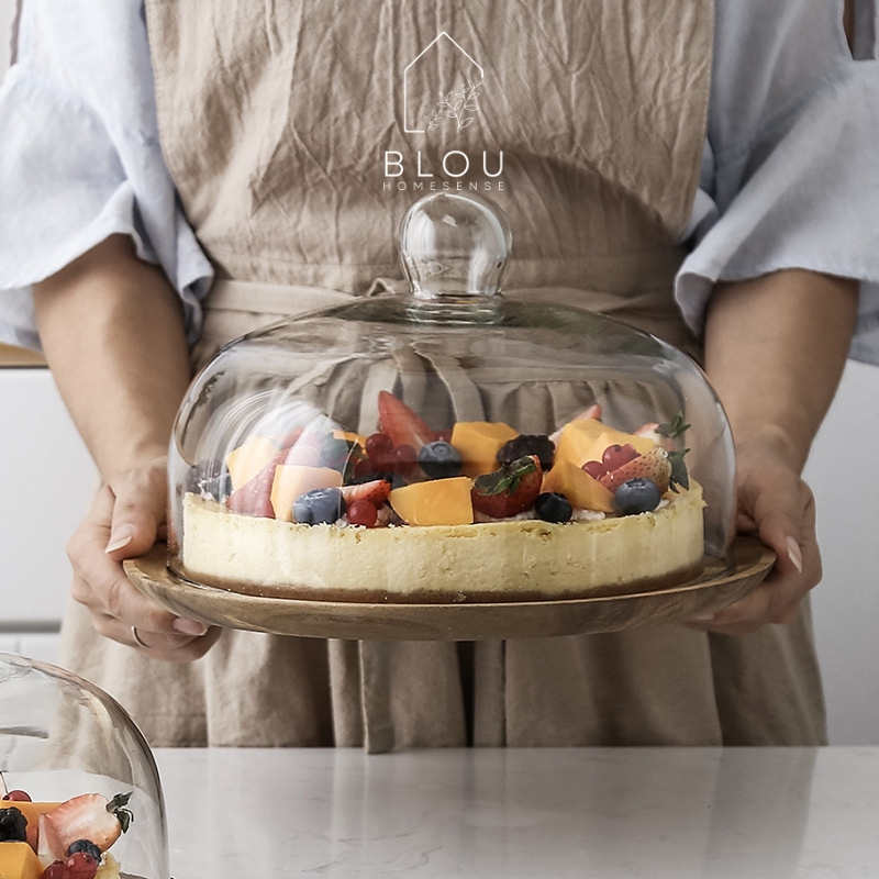 Blou Wadah Kue dengan tutup kaca Acacia wood round tray wooden fruit cake plate Japanese cake plate with lid