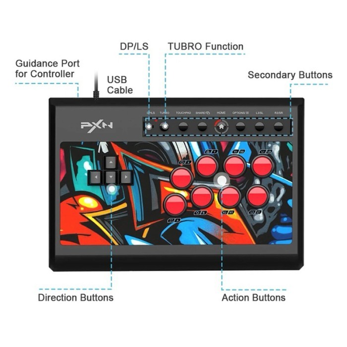 Pxn X8 Keyboard Wired Arcade Fight Stick For Joystick Game Controller